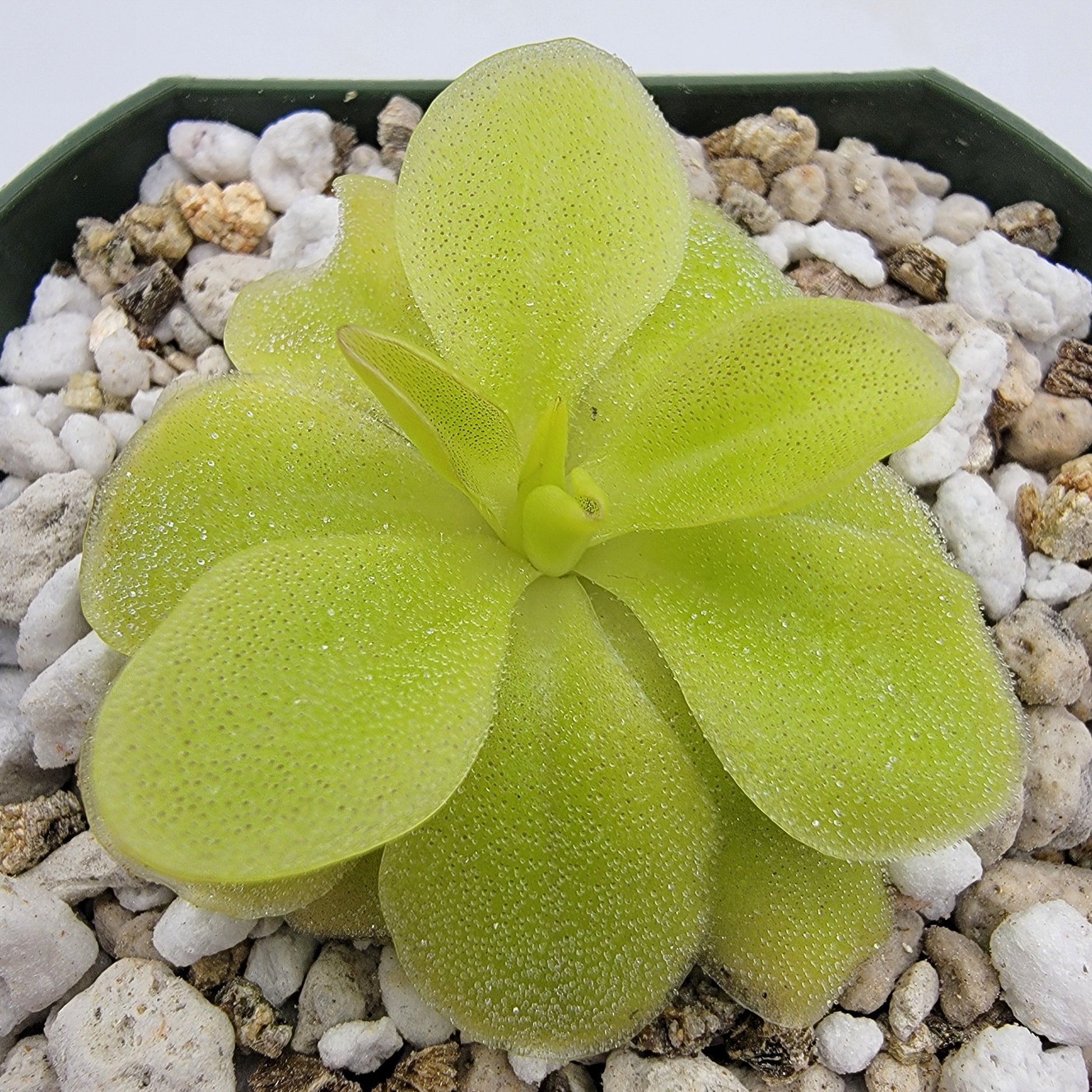 Pinguicula 'Sumidero II' is a perennial heterophyllous butterworts that produces distinct summer and winter leaves. During winter, it produces non-carnivorous leaves; carnivorous leaves are produced during spring/summer. Pinguicula 'Sunmidero II' is green and has a purple flower. This particular Pinguicula comes from Sumidero Canyon National Park in Chiapas, Mex. Pinguicula 'Sumidero II' can be found in the Christmas Tree Waterfall.
