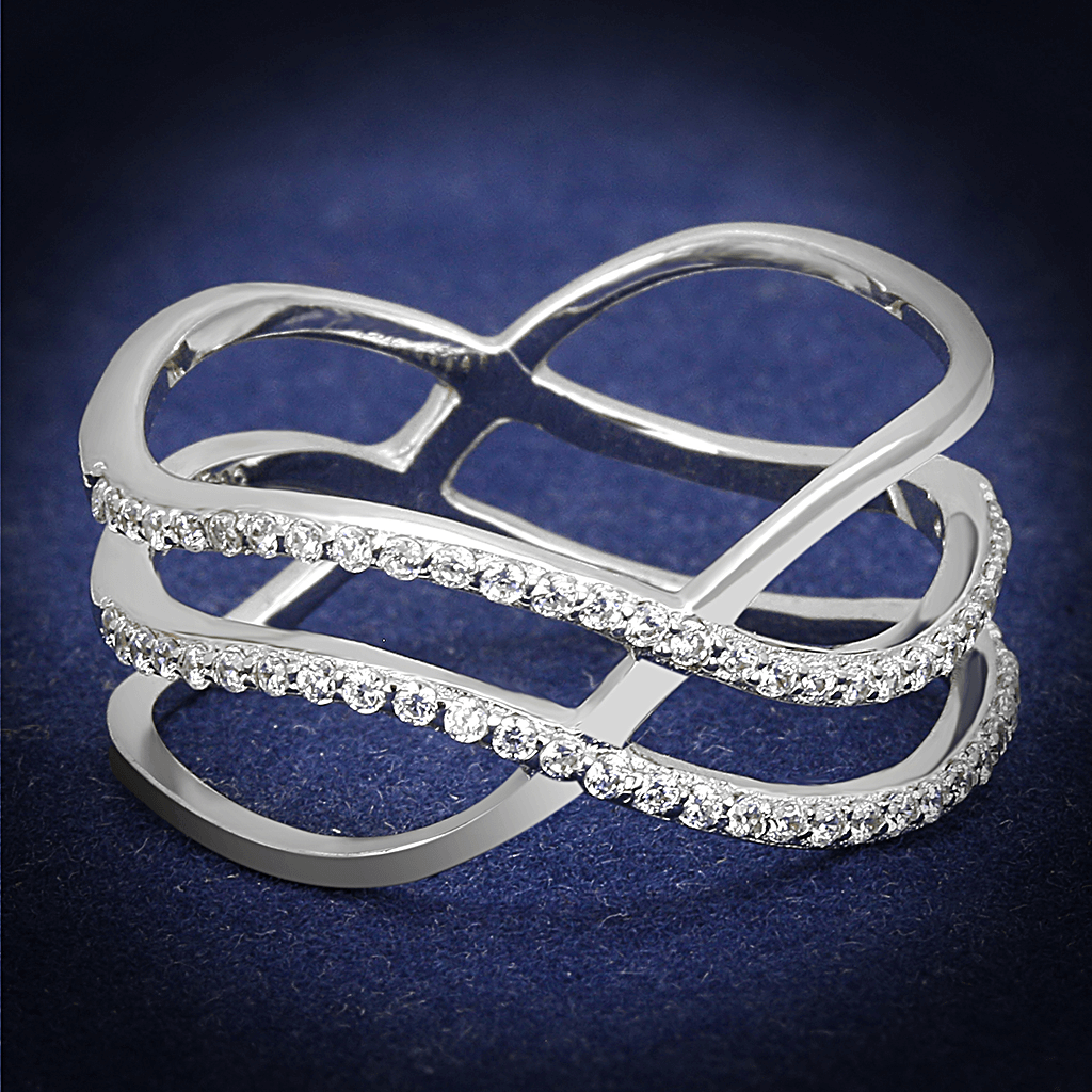 Rhodium 925 Sterling Silver Ring with AAA Grade CZ in Clear