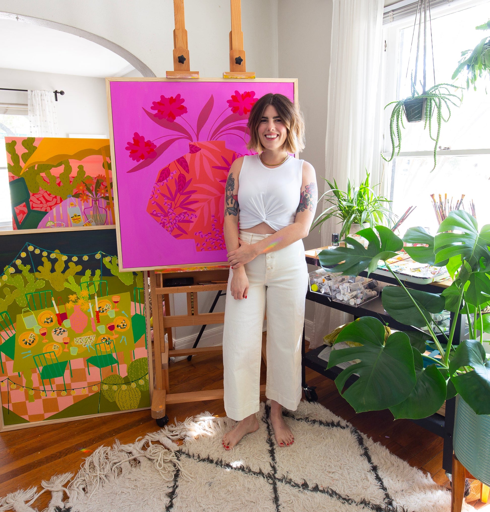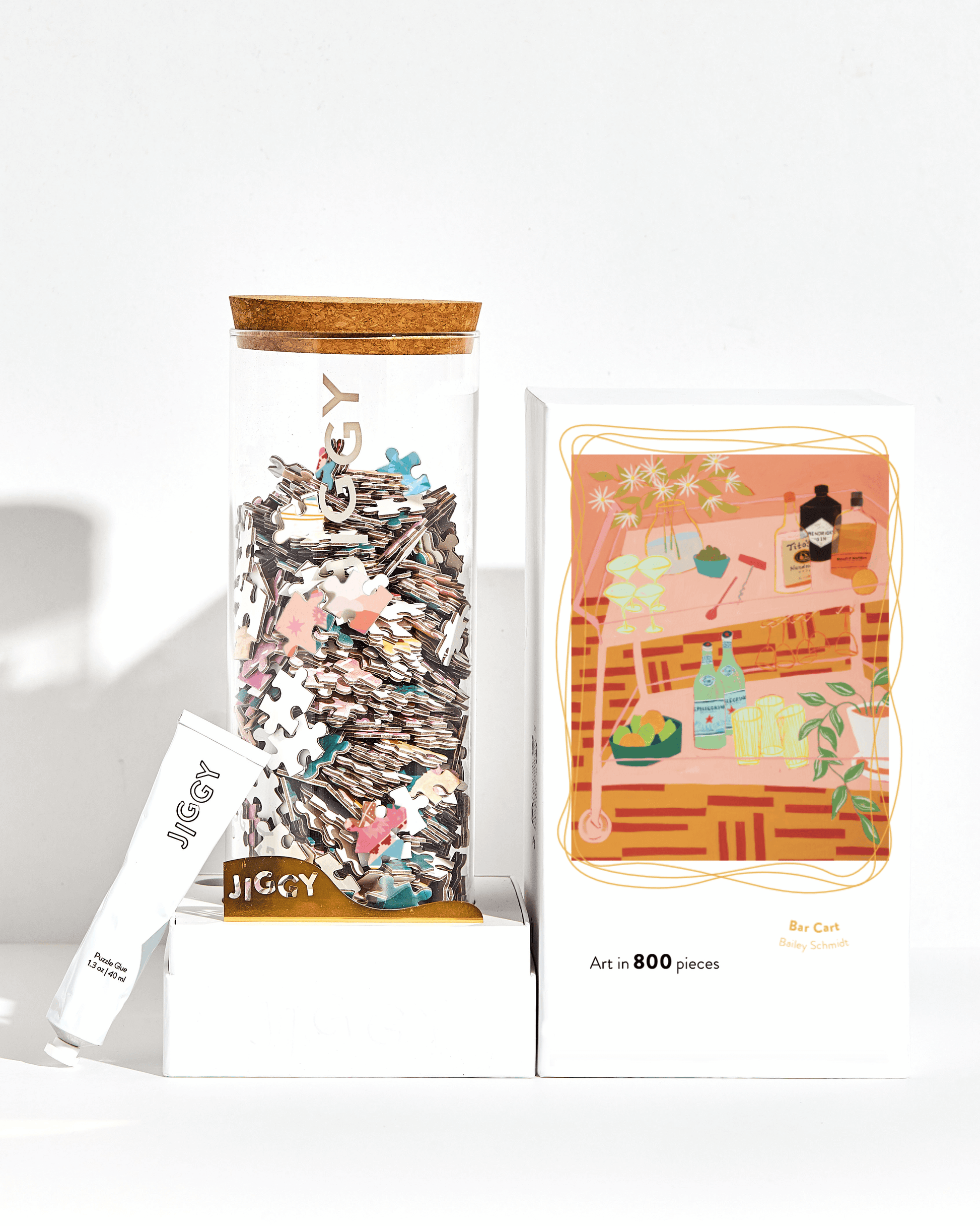 Bailey Schmidt, a Charlotte-based painter, transforms her background in printmaking and graphic design into vibrant, pattern-rich compositions. This 800-piece puzzle celebrates her signature style—bold color palettes, unexpected combinations, and florals that radiate warmth. Measuring 18 x 24 inches when complete, it arrives in a reusable glass jar with puzzle glue, a spreader tool, and an art reference print. Perfect for those seeking thoughtful décor that infuses spaces with artistic energy and visual delight.