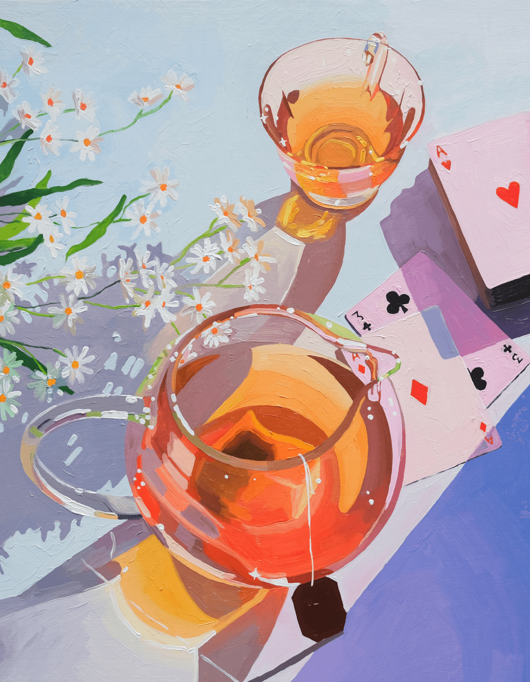 Leah Gardner is a self-taught painter who lives and works in Chicago, Illinois. In March of 2020, she picked up painting as a distraction from what was unfolding around the world. After a few months of fiddling around, accumulating a stack of terrible paintings, and learning from many mistakes, she realized she was developing a knack for working with oils and began to sell her work.